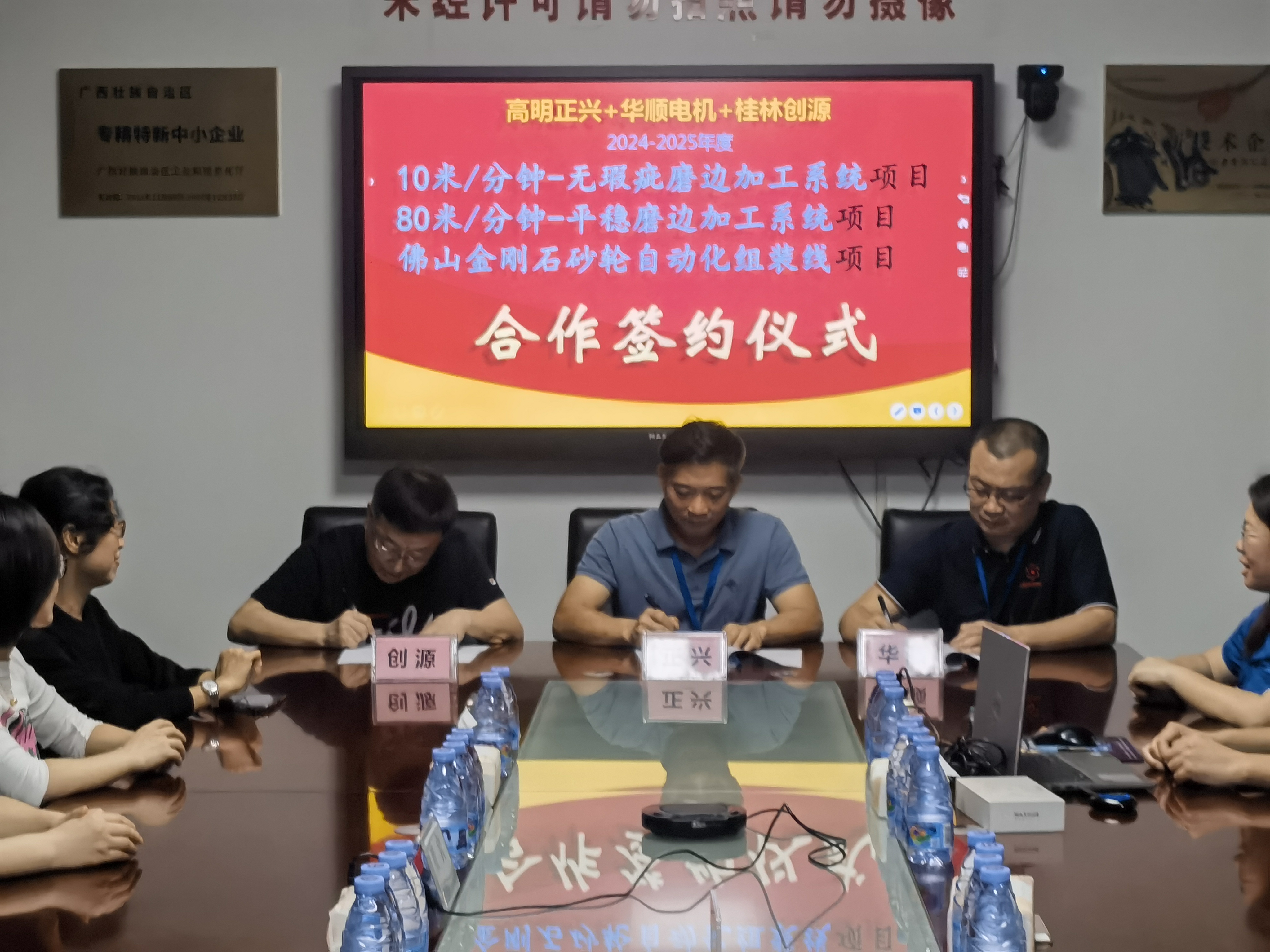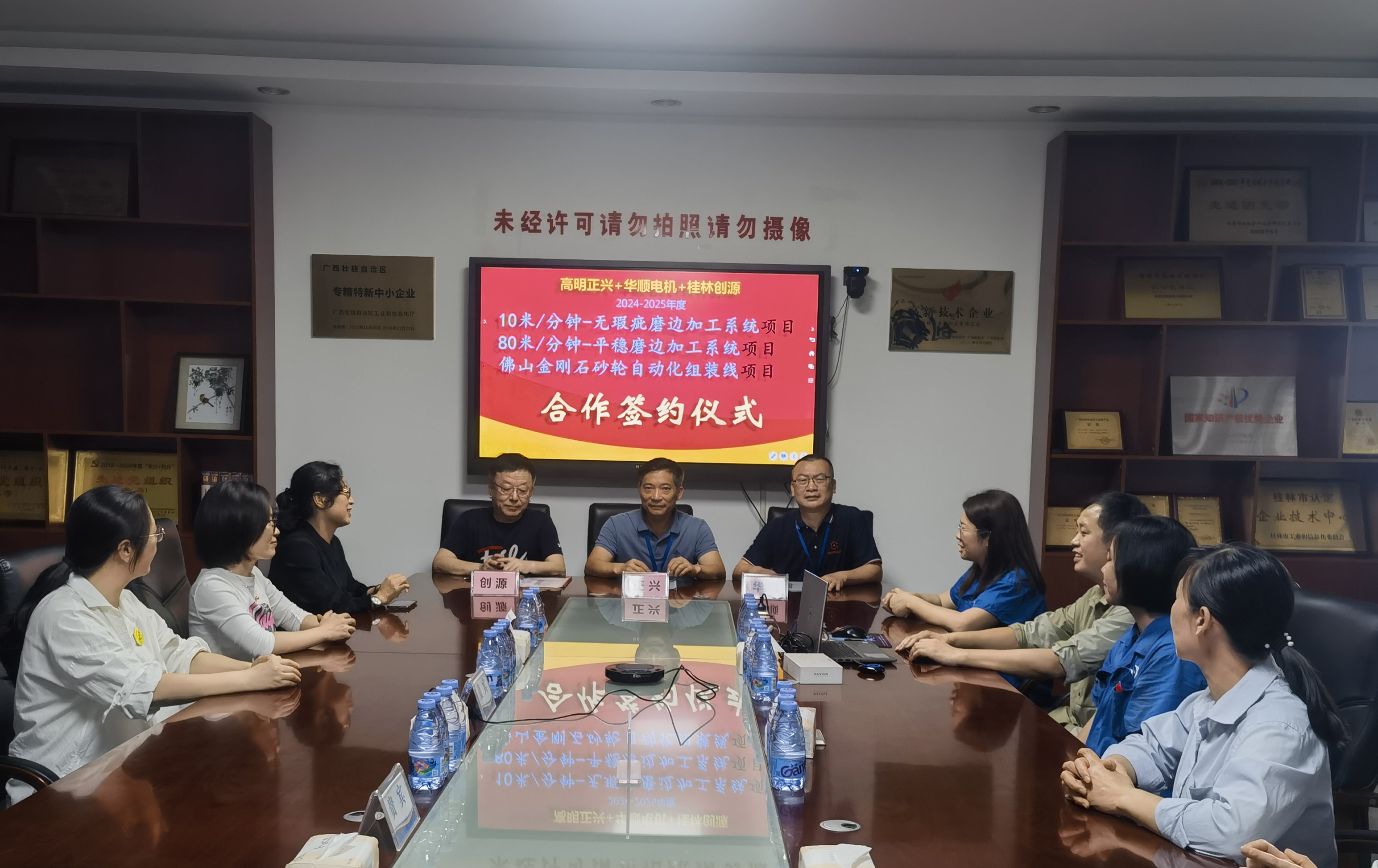 2024年5月,創(chuàng)源公司、正興公司、華順公司三家業(yè)內(nèi)領(lǐng)軍企業(yè)齊聚高明正興公司(5月17日)和桂林創(chuàng)源公司(5月23日),就2024年上海玻璃展會進(jìn)行了深入分析和總結(jié),并對行業(yè)未來走向進(jìn)行了前瞻性的探討。在友好的交流與討論中,三家公司達(dá)成共識,擬定了多項(xiàng)戰(zhàn)略合作計(jì)劃,旨在共同推動玻璃加工技術(shù)的創(chuàng)新與發(fā)展。