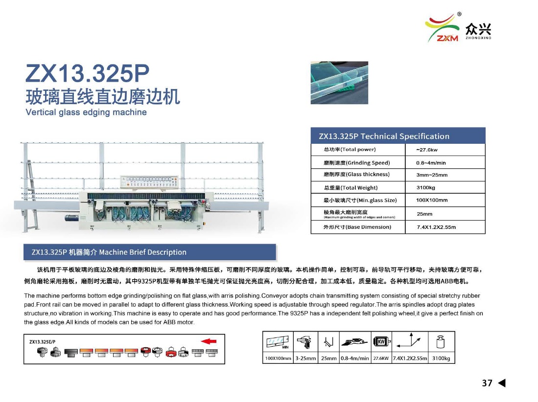 公司目前產(chǎn)品有:雙邊磨、波浪機、直邊機、圓邊機、斜邊機、多級邊磨邊機、鉆孔機和異形機等多種型號的玻璃深加工設(shè)備。