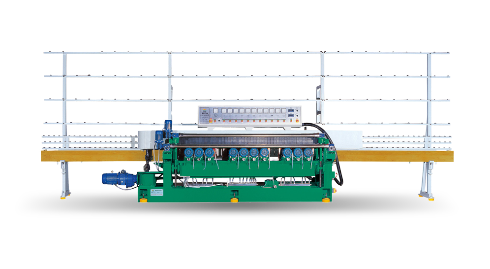 該機(jī)采用短節(jié)巨大滾子鏈條傳動(dòng)壓板,磨頭采用ABB電機(jī)精度高、能耗低、穩(wěn)定性強(qiáng),主傳動(dòng)采用無(wú)級(jí)減速器調(diào)節(jié),同步帶輸送,主要用于磨削玻璃的斜邊,斜邊的多種組合。精磨和拋光以及底邊磨削一次加工完成。具有加工效率高、質(zhì)量好、性能穩(wěn)定、操作簡(jiǎn)便及損耗低等特點(diǎn)。